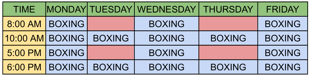 BOXING SCHEDULE